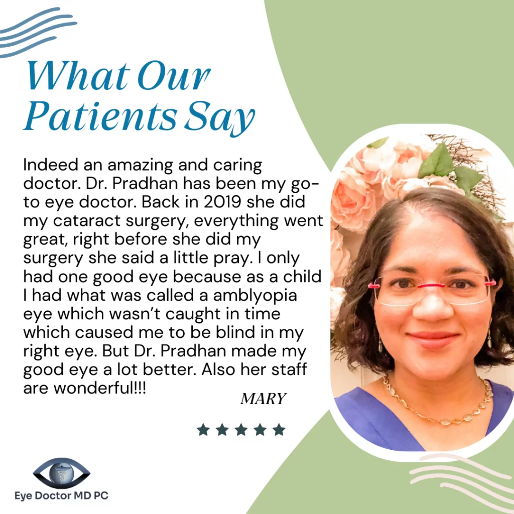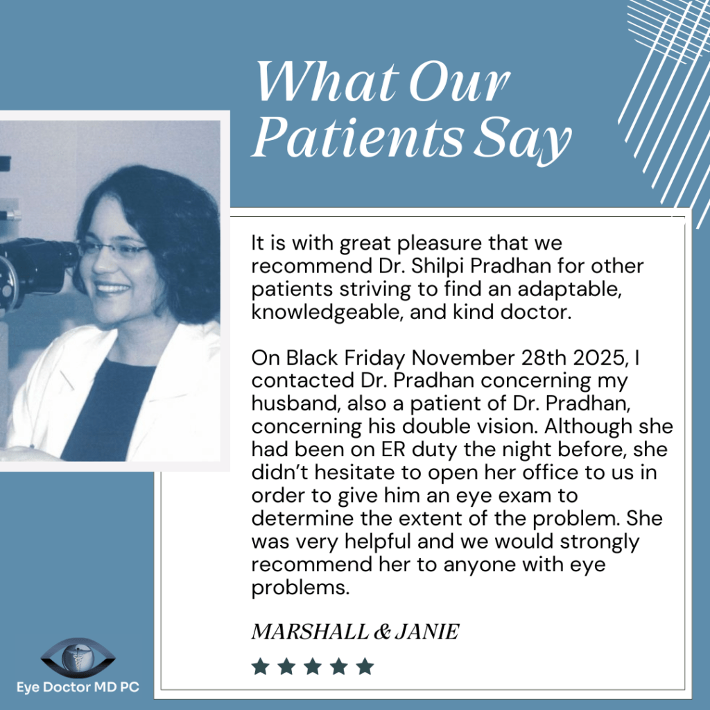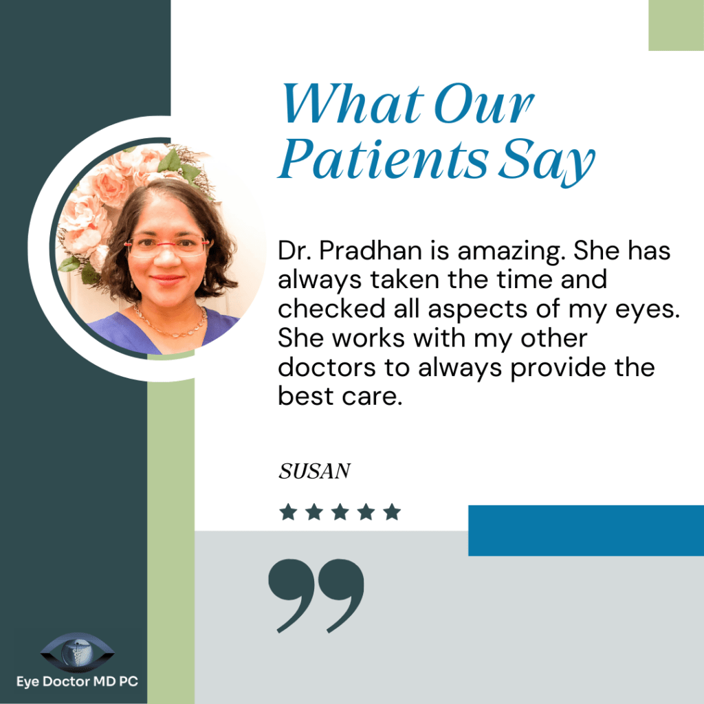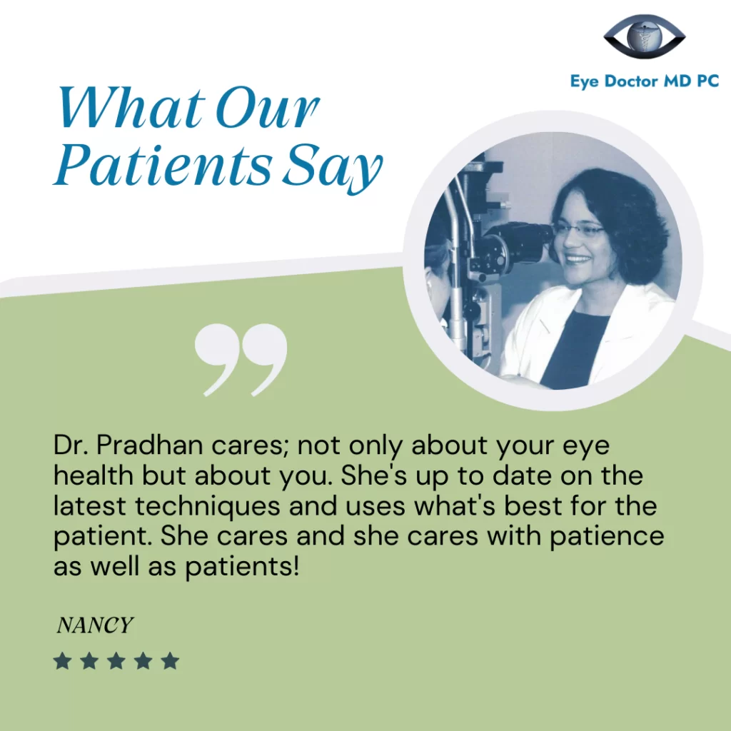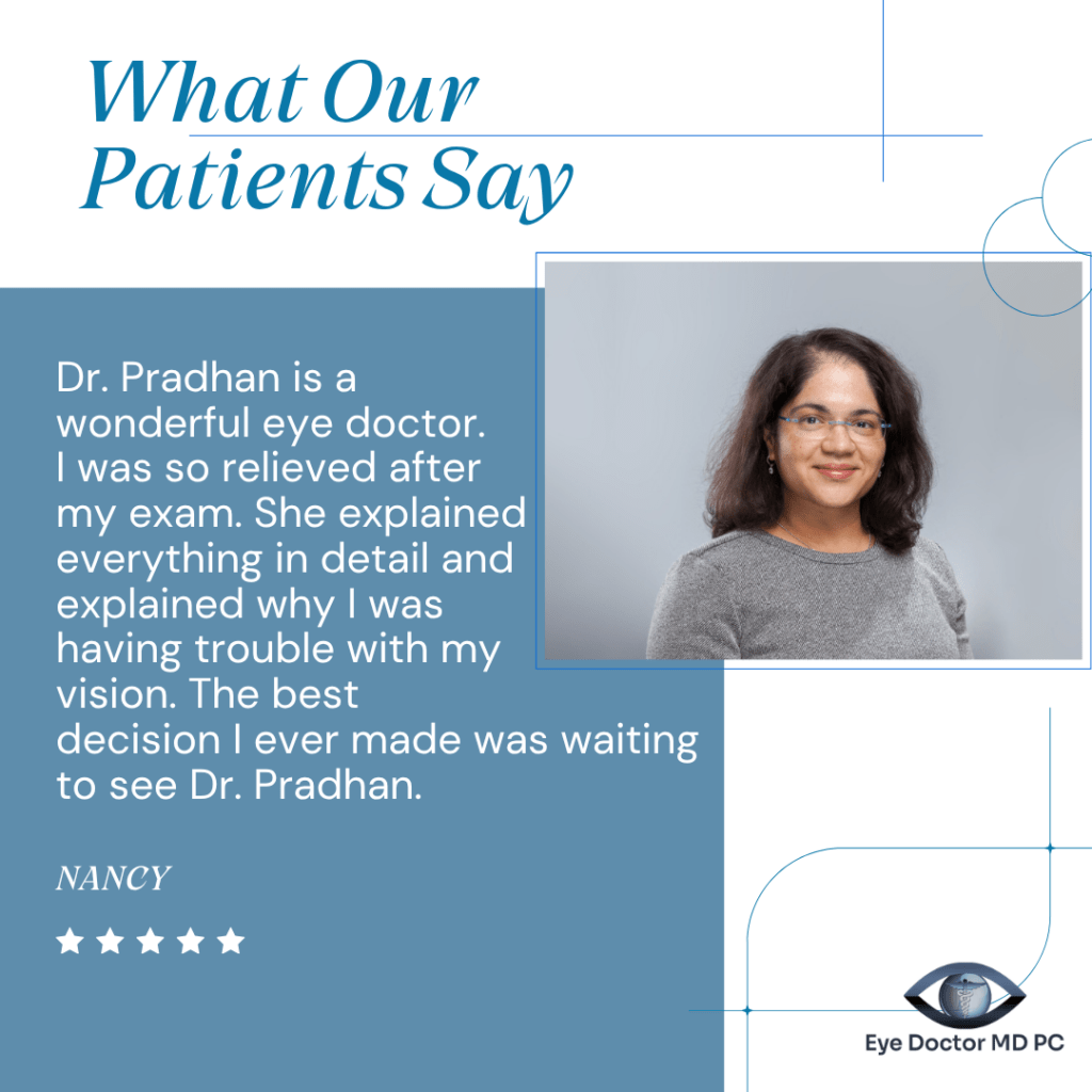 Most importantly, Dr. Pradhan is grateful for the trust and partnership of the community she serves. She is inspired by patients who are taking an active role in protecting their eye health and making positive choices for their overall wellness. As the community continues to grow, Dr. Pradhan looks forward to continuing to provide compassionate, forward-thinking care and helping patients see and live more clearly for years to come.